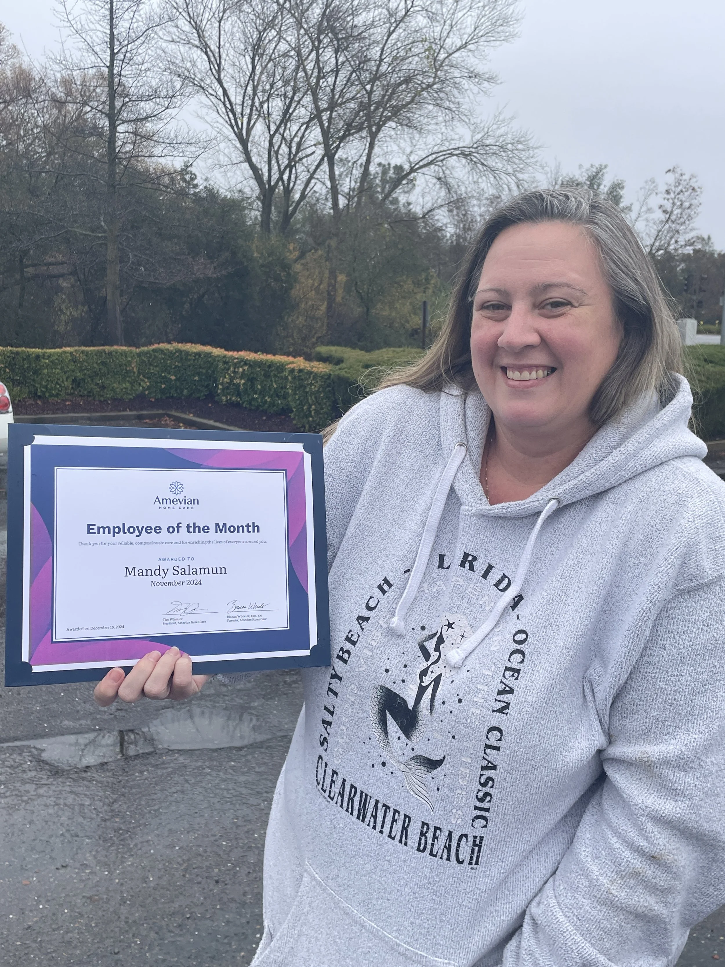 Congratulations, Mandy Salamun, employee of the month for November 2024! Although she has only been part of our team for about 3 months, Mandy made an immediate impression on our clients and their families. With over 7 years of experience and a heart for people, it became very clear that she was our next recipient of the Employee of the Month award. Mandy is calm and kind, always bringing comfort and reassurance to our clients. She is ready to help at a moments notice and can be trusted to do what she says she will do, show up when she says she will be there. Thanks so much for the great work you do, Mandy. We’re glad you’re on our team!